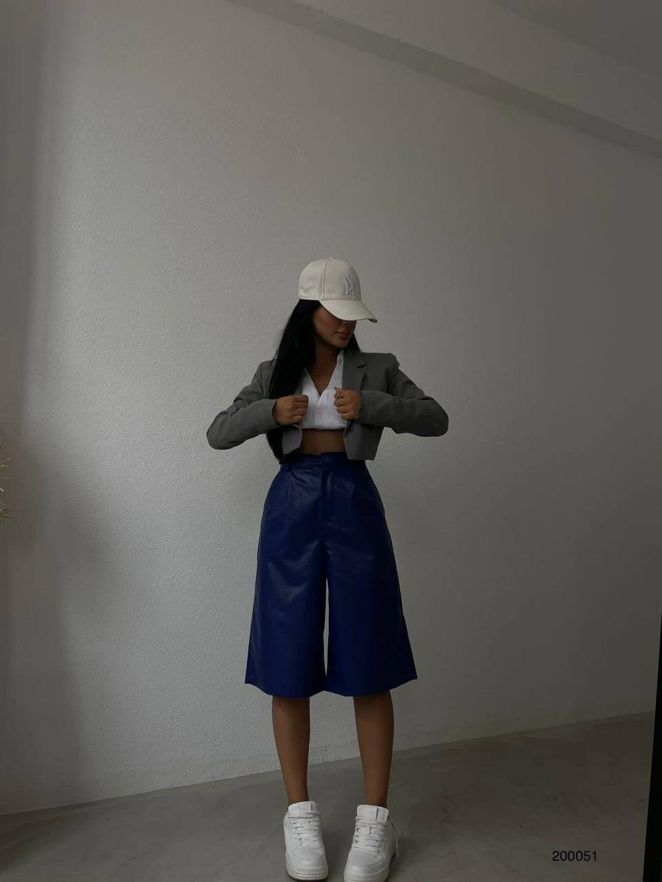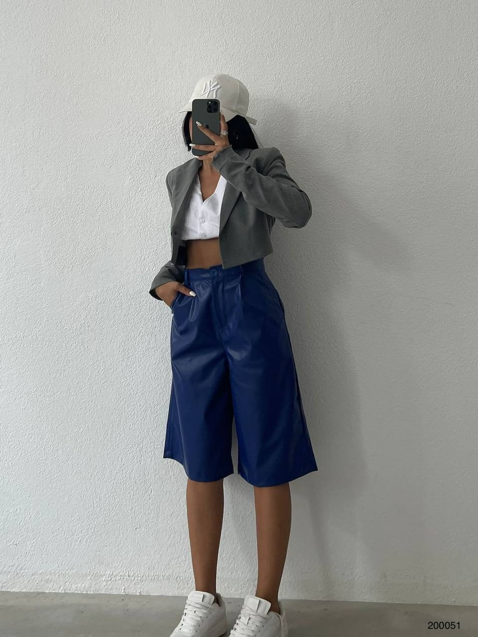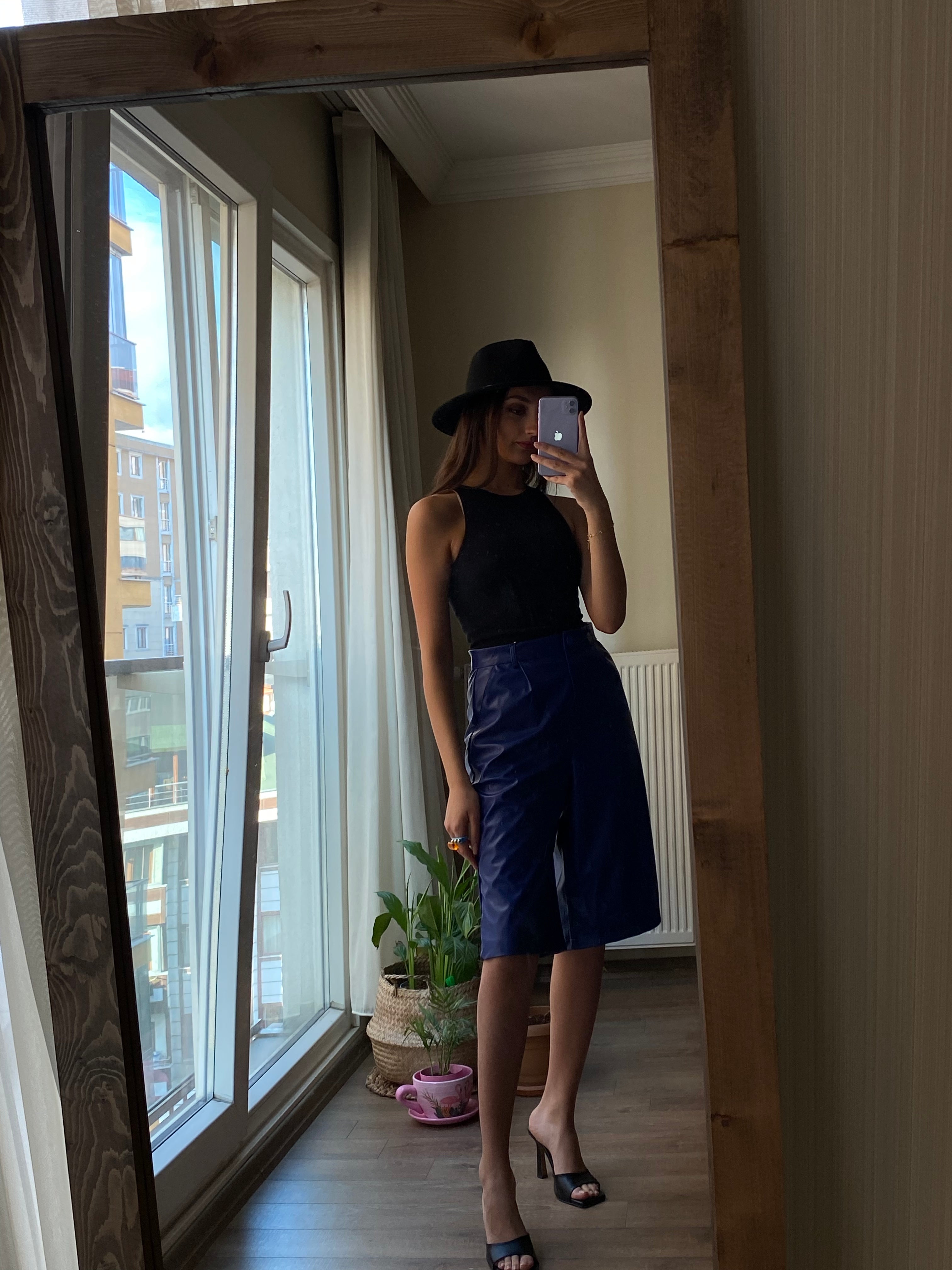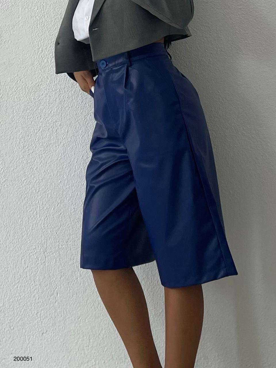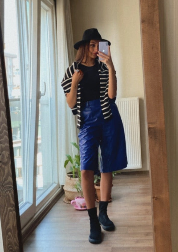 Leather bermuda shorts/ knee covering length Model: (Weight: 53kg/ Height: 168cm) Model wearing size: S Read more